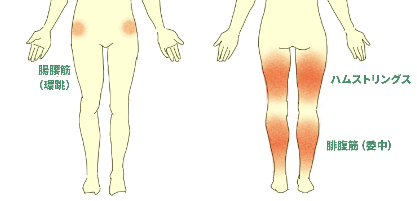 下半身の筋肉を中心に緊張が起こっており、足の冷えやむくみに加えて、膝痛や腰痛、さらには足のしびれや便秘などに発展していく可能性があります。